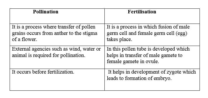List Any Two Differences Between Pollination And Fertilisation Snapsolve