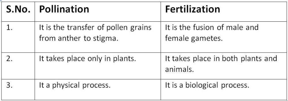 Short Answer Question List Any Three Difference Between Pollination And Fertilization Snapsolve